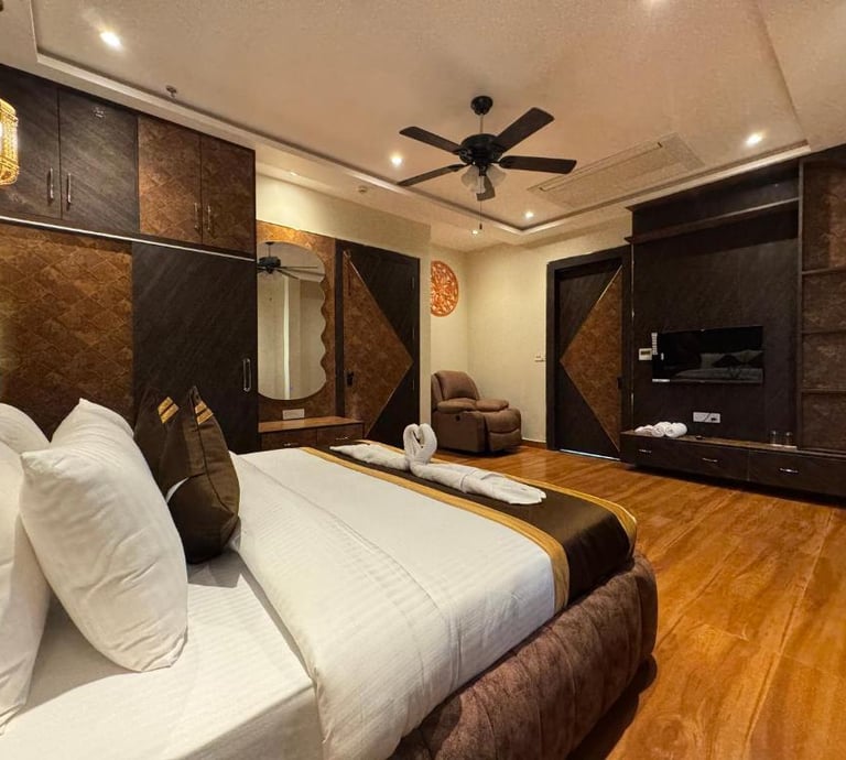 Every room includes modern comforts — LED TV, Wi-Fi, 24×7 room service, laundry, and more.